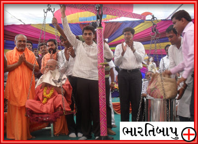 n every Vaishakh month, at full moon day the anniversary of Bhojalrambapa is celebrated.Every year,glorious and quite different ‘Seva yagna’and ‘blood bank camp’ are held.Attractive gifts as a prasad are given to every blood donor. More than one lac ladies and gents take part in this ceremony. Bhajans\Santvani programme is held at night. Saints and chief of monestery like Moraribapu (Ramayani) Bhartibapu (Bharti Ashram,Junagadh) Vijay bapu(Satadhar) Lavjibapu(Nesadi), Manjidada(Bagdana), Vasantdidi(Liliya) Jerambapu(Bagasara) attend this programme.This is the greatest festival in Amreli district.