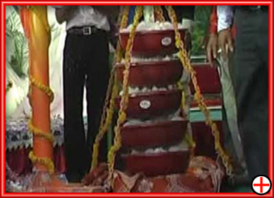 The saints,the cheif of monestery and donars are honoured by doing Sakratula at the occasion of anniversary of Rev.Bhojalrambapa.